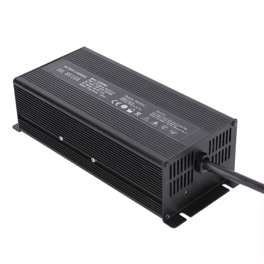 This charger adopts MCU and PWM,able to set the optimal charging curve according to battery information.With active PFC and LLC half-bridge circuit ,the charger is high-efficiency, more stable and more safer.Aluminum alloy shell and internal glue filling, to be sturdy and durable.Three-color LED indicator can be programmed for different charging states.The fan can adjust speed automatically.